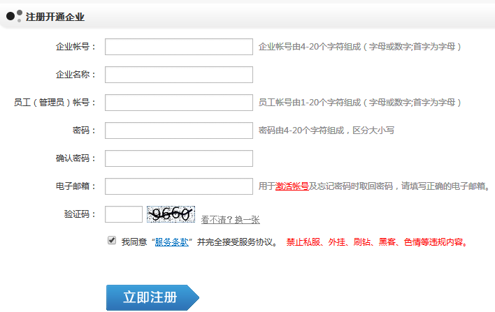 企业帐号:您企业的帐号,可以是企业的拼音字母,也是您试用网站的网址;